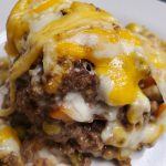 Ground beef and mixed vegetables topped with mashed potato and melted cheddar-jack cheese served with a rich brown gravy.
